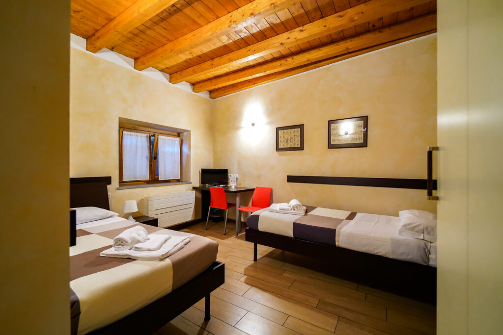 L’Antico Borgo mette a disposizione anche una camera quadrupla, con letto matrimoniale e letto a castello, adatta alle famiglie o a gruppi.